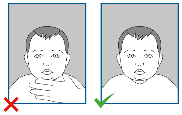 - If the child needs to be supported, this must not be visible on the photo.