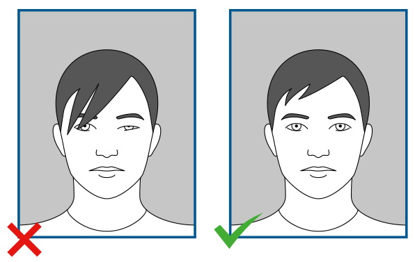 | Long fringe | Yes, but not too long: eyes and face must be fully visible. |